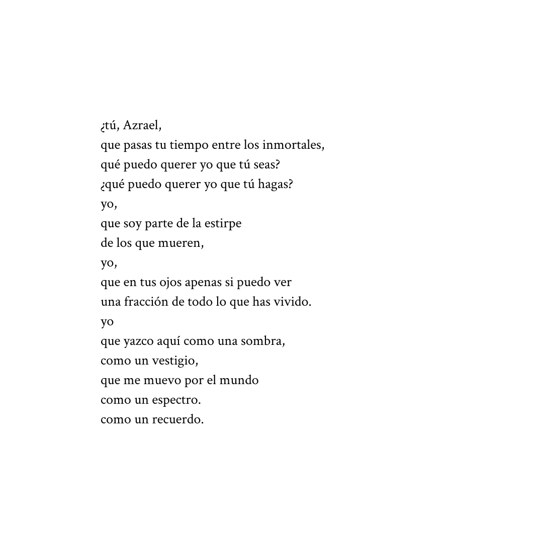 (Entre los poemas que conforman Salas de espera está Azrael, que es, para mí, la cosa más bonita que creo haber escrito de todas las que recuerdo.)